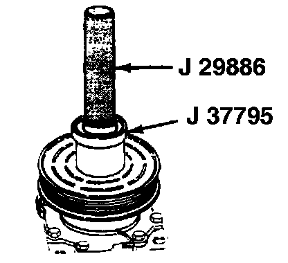 ^ Place J 37795 into bearing cavity with the outer edge of the rotor bearing outer race.