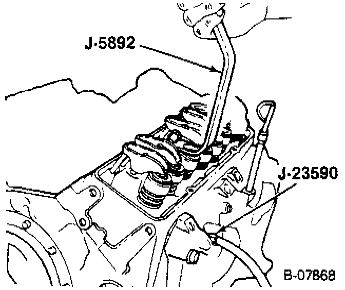 ^ Use J 5892-A to hold the valve spring.