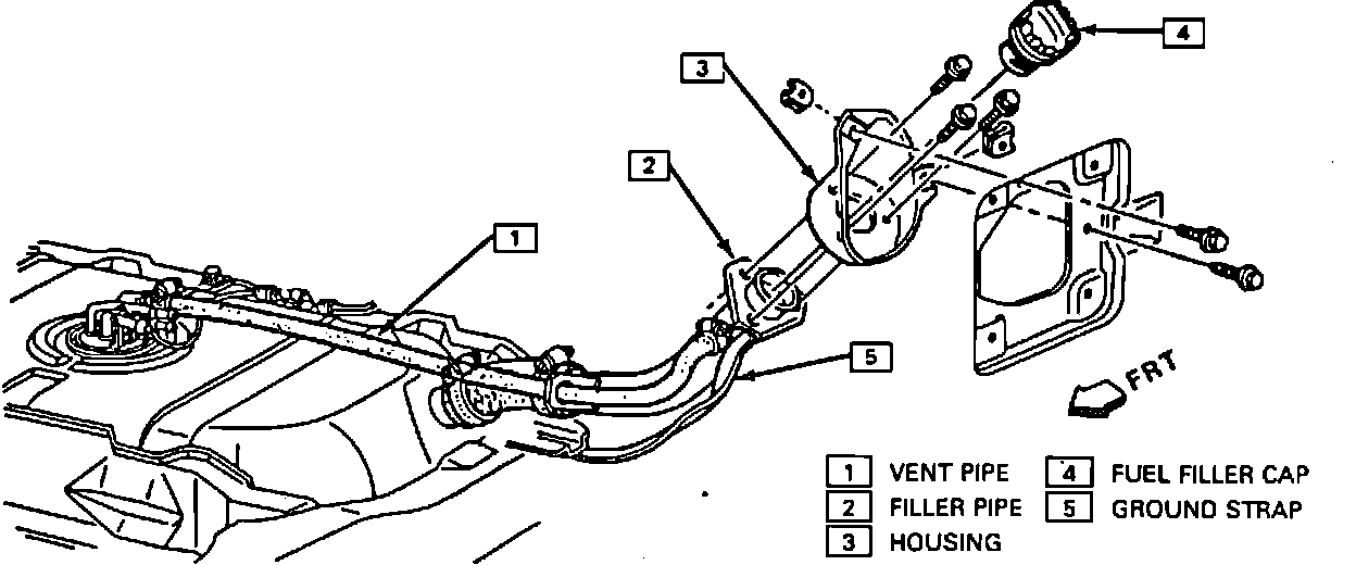 The fuel tank is located under the rear of the vehicle and is the fuel reservoir. The tank has a vertical baffle installed to prevent fuel slosh. The fuel pump and fuel level sending unit assembly are mounted in the fuel tank as one assembly. The fuel tank assembly also consists of the fuel filler neck and filler cap.