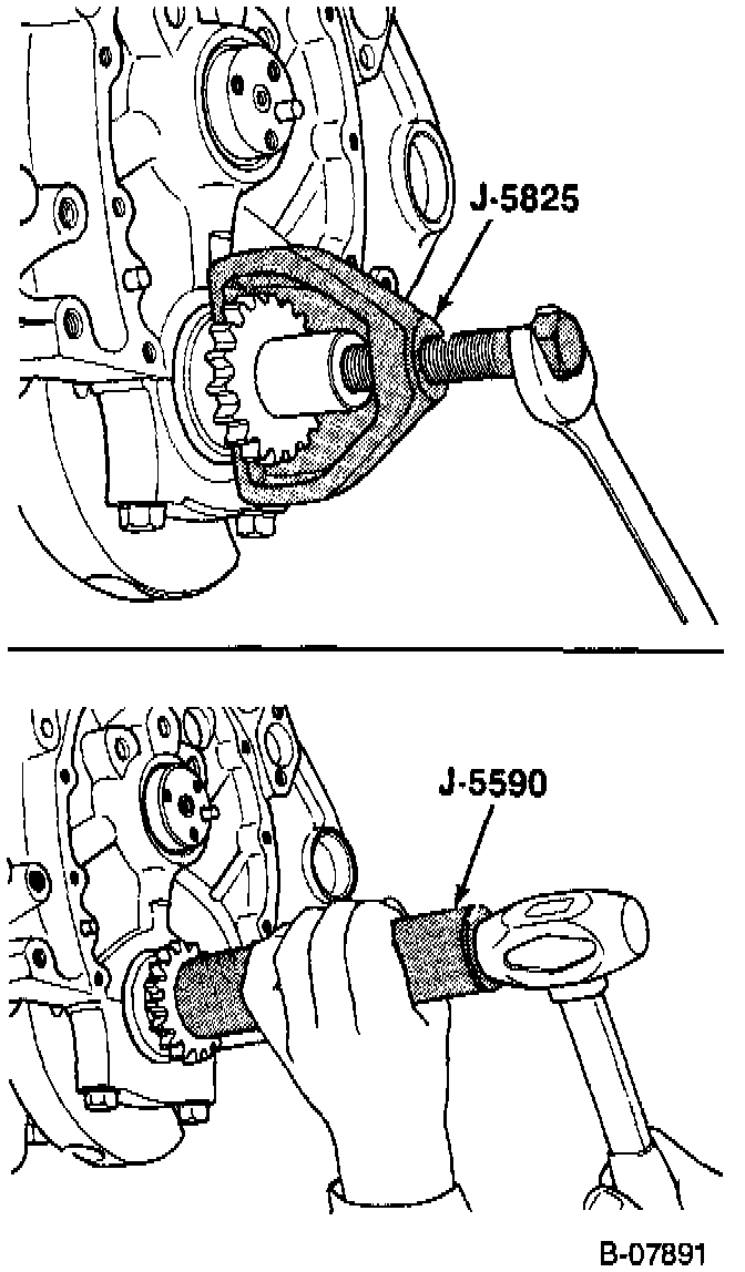 Tool Required: J 5590, Crankshaft Sprocket Installer