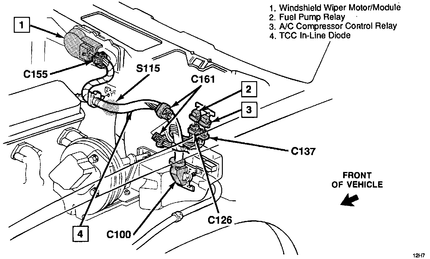 A/C Compressor Control Relay - Above LH fender apron