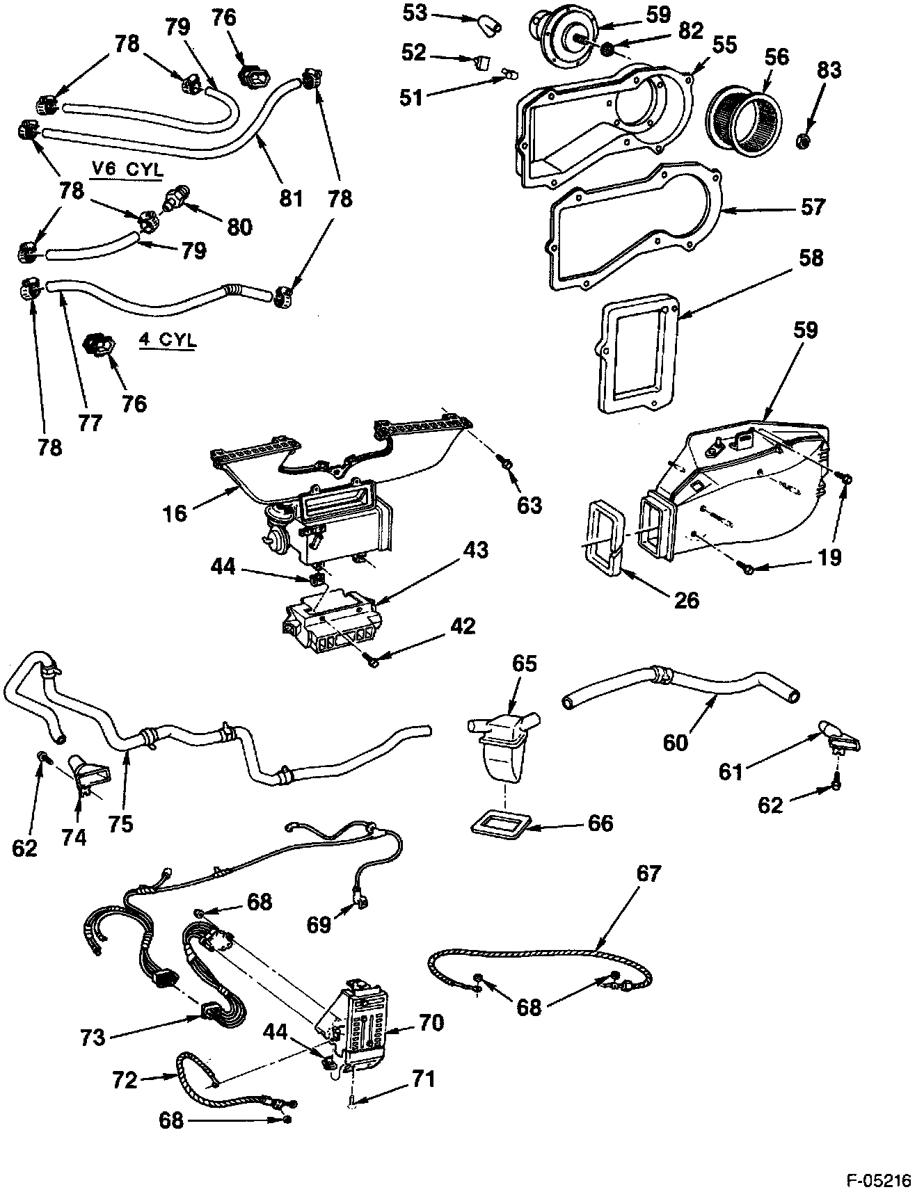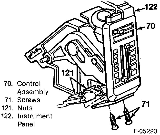 5. Control assembly (70) to the instrument panel.