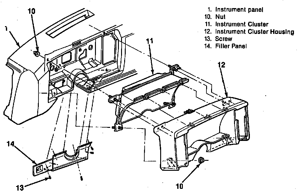 5. Remove instrument cluster housing attaching nuts and cluster housing.