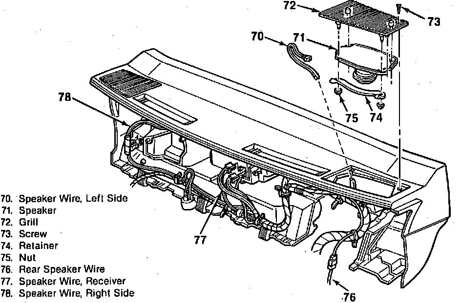 11. Remove speaker grille attaching screws, then the speakers, Fig. 26.