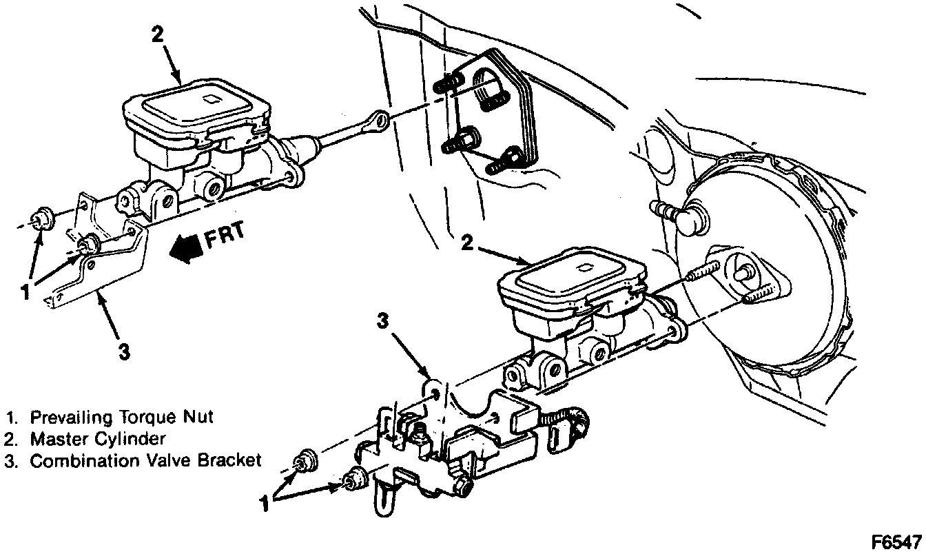 2. Install master cylinder, combination valve bracket and mounting bolts.