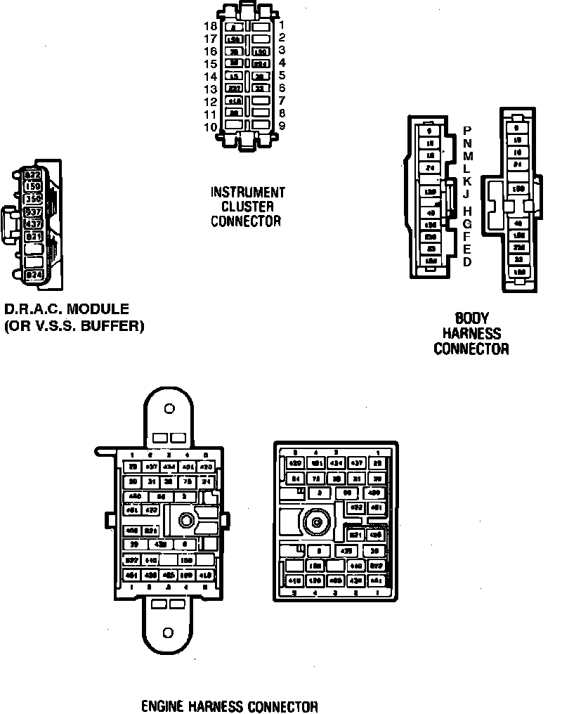 Fig. 10 Rear Wheel Anti-Lock (RWAL) Electrical Connectors. L, S/T & 1992 G Models: