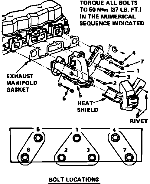 7. Tighten exhaust manifold bolts to specifications in sequence shown in Fig. 4.