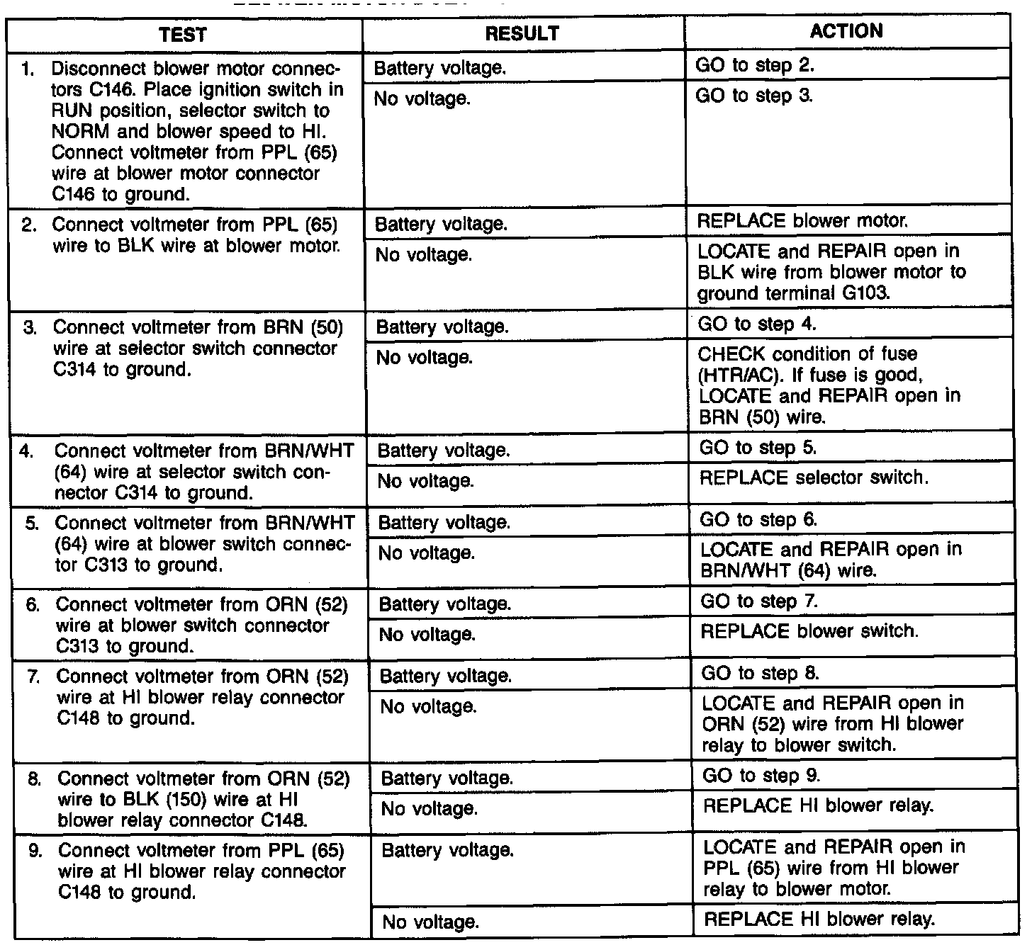 Blower Motor Does Not Operate In Any Mode: