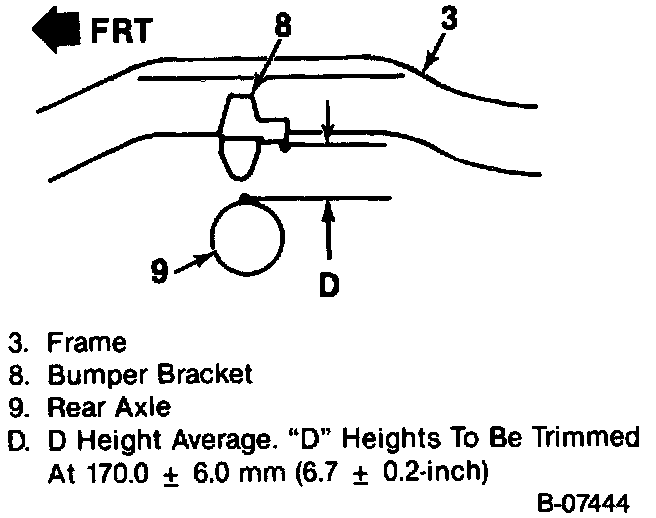 3. Lift the rear bumper of the vehicle up about 38 mm (1.5 inch). Let the vehicle settle on its own. Do this three times. Measure "D" dimension.