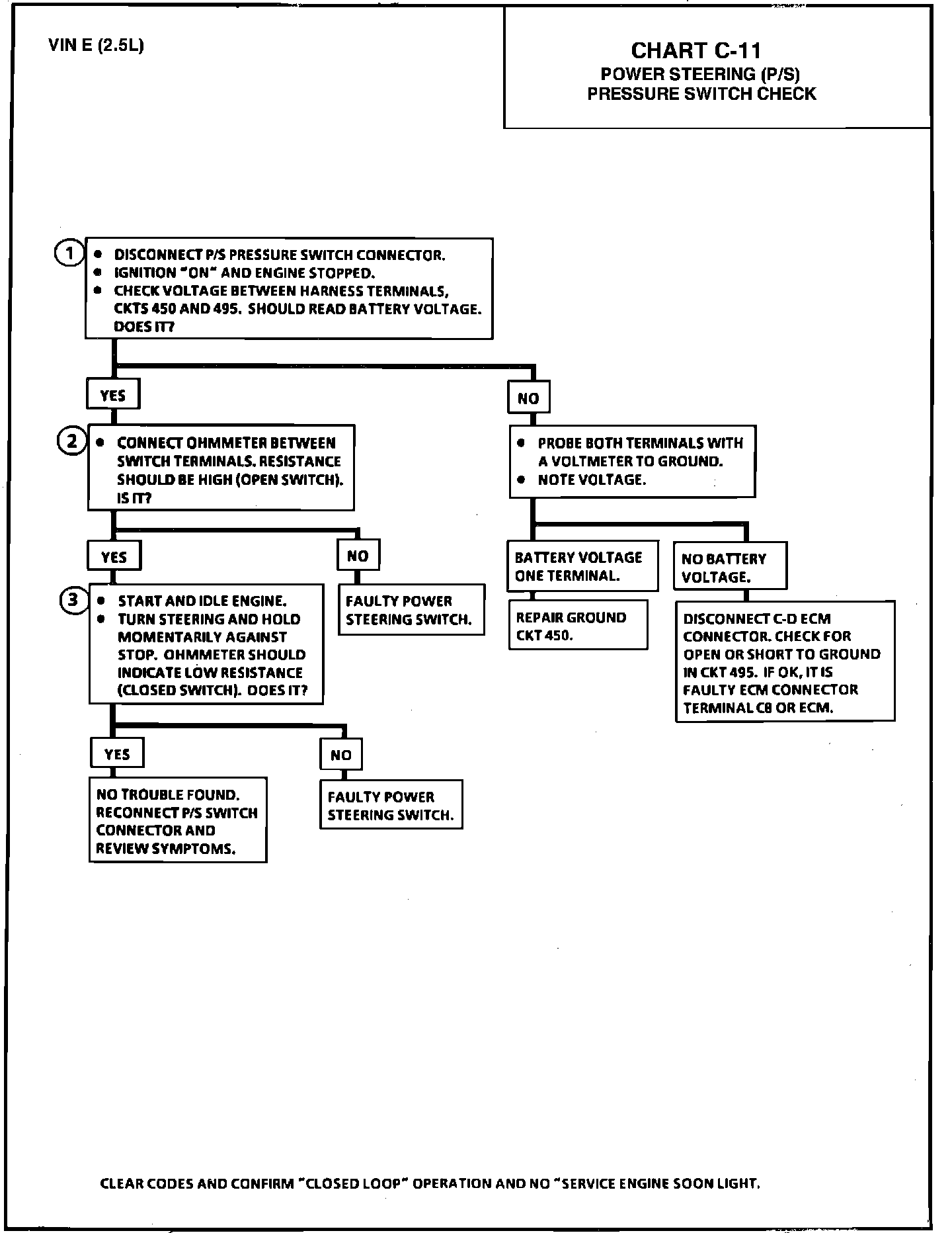 CHART C-11 - POWER STEERING (P/S) PRESSURE SWITCH CHECK