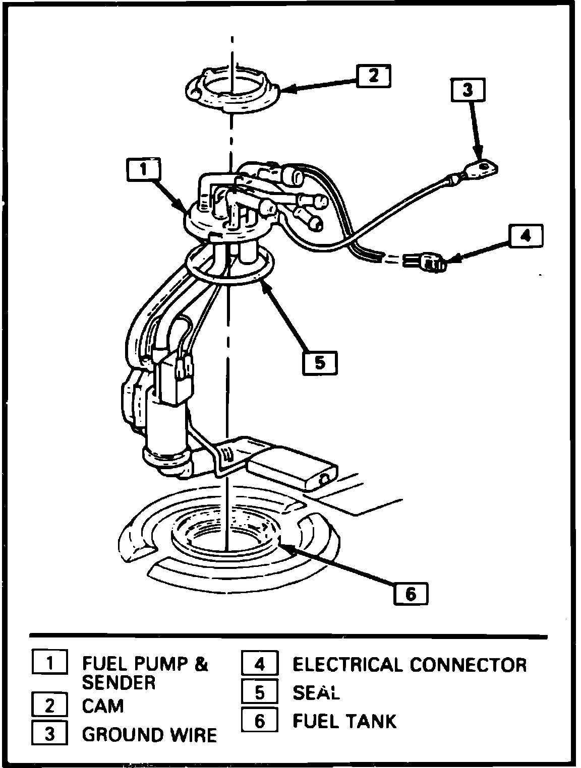 4. Remove fuel tank, then fuel sending unit and pump assembly by turning cam lock ring counterclockwise.