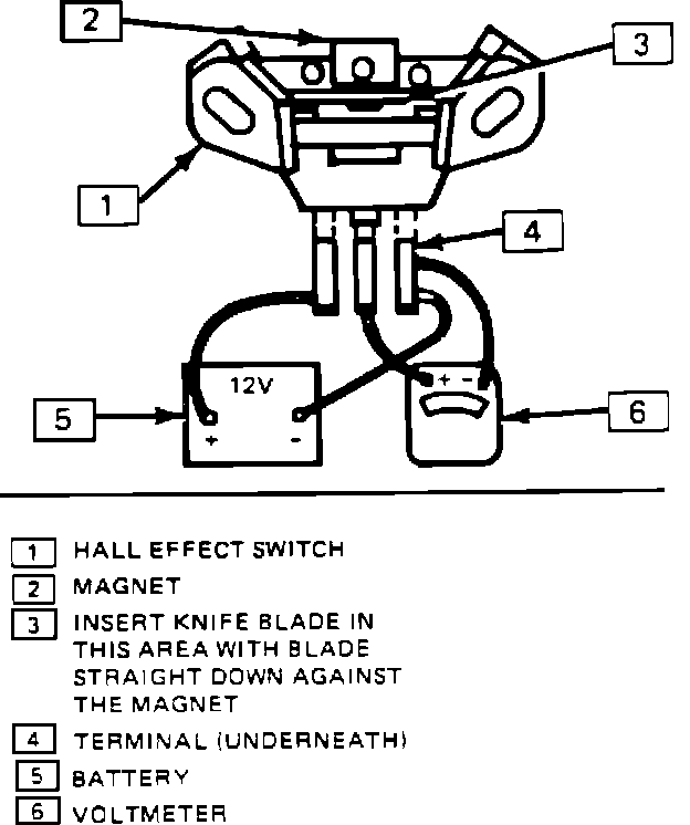 4. With the blade against the magnet, voltage should be within 0.5 volts of the battery voltage. Replace switch if there is a low voltage reading.