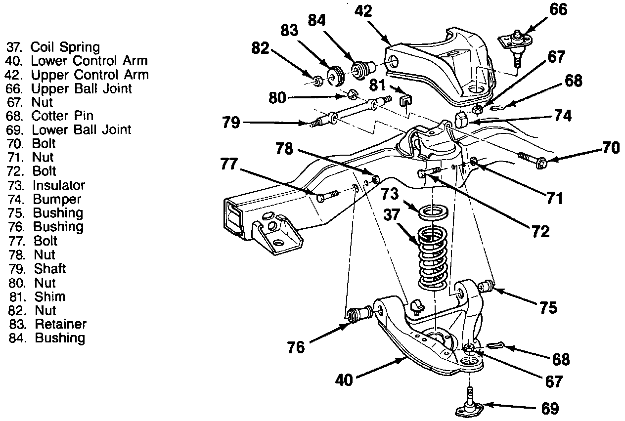 6. Grease fittings and lower ball joint (69) from the lower control arm (40).