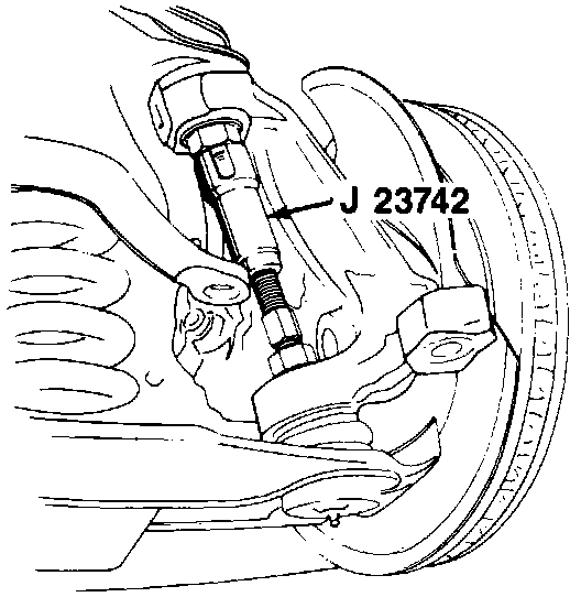 4. Cotter pin (68) and the nut (67). Use J-23742 to break the ball joint loose from the knuckle.
