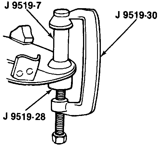 1. Press the new ball (69) joint into the lower control arm (40) using J-9519-D and locate the grease seal facing inboard.