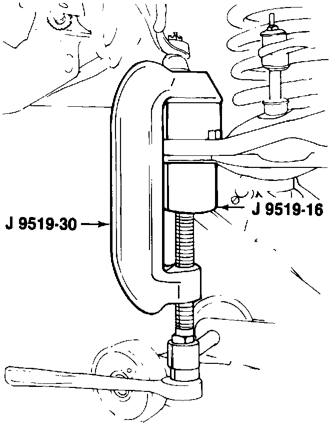 NOTE: Block the knuckle assembly out of the way by placing a wooden block between the frame and upper control arm.