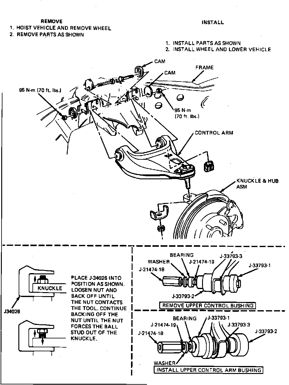 Fig. 3 Upper Control Arm & Bushing Replacement. 4 X 4 Models:
