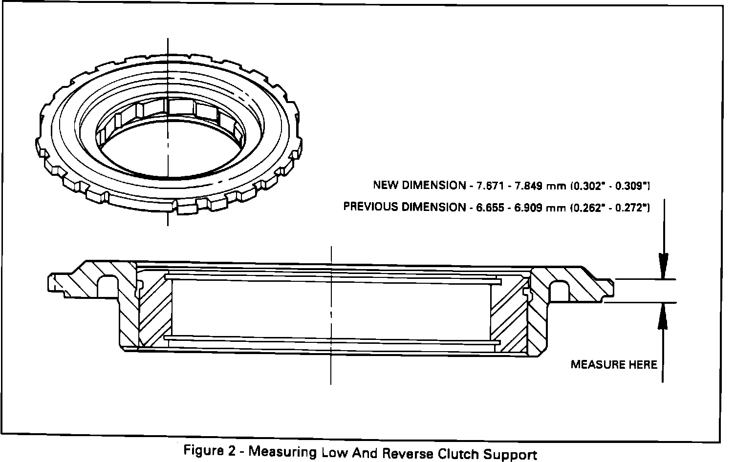 The only way to identify the new low and reverse clutch support is to measure its thickness with a micrometer. (See Figure 2.)