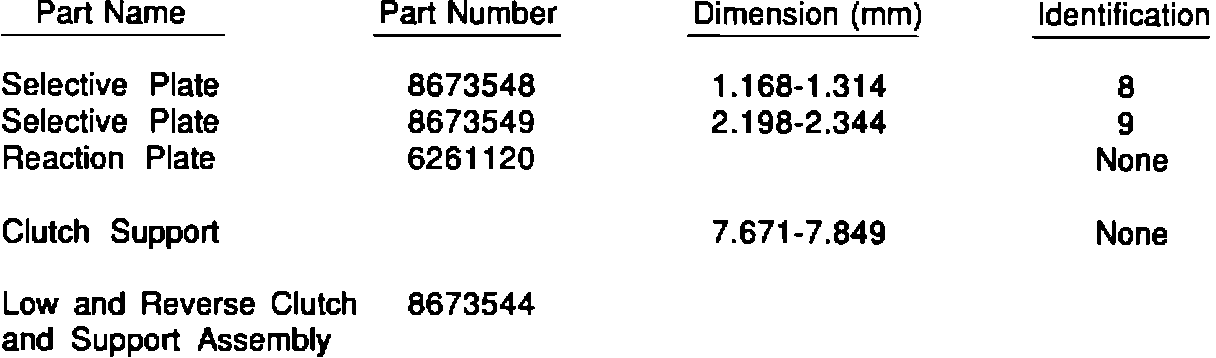 The new low and reverse clutch support and selective plates may be used to service some past model year transmissions if: