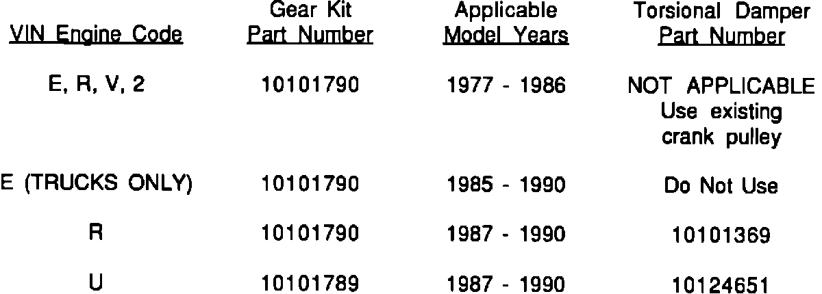 Model and Year: 1980-85 X CAR AND 1985-90 A, F CAR WITH 2.5L (VIN CODE R, V, 2) ENGINES 1977-90 S, T TRUCK AND 1985-90 M VAN WITH 2.5L (VIN CODE E, R, U) ENGINES