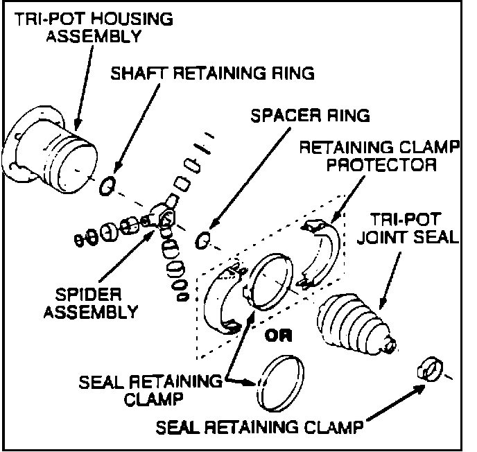 2. Remove seal clamp protectors (Figure 10) if used, from inner C/V joint and cut clamp(s) from seal with a pair of side cutters. For swage ring removal use a hand grinder to cut through the ring (taking care not to damage the housing).
