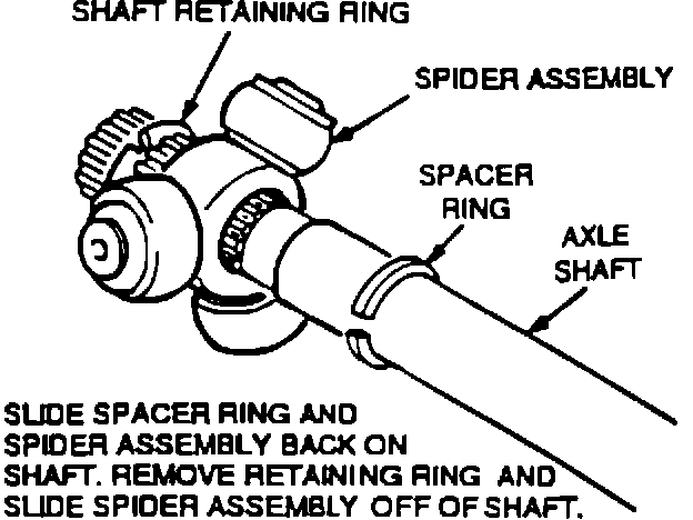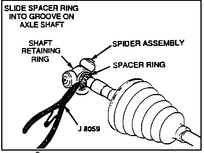 10. Install spacer ring and spider assembly (with counterbore toward end of shaft) on the shaft far enough to allow installation of the retaining ring at the end of the halfshaft (Figure 14).