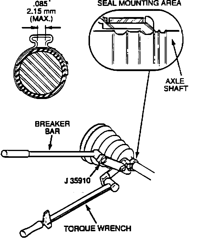 13. Secure the large metal clamp and seal to the housing with tool J35910, breaker bar and torque wrench. Torque the large clamp to 176 N-m (130 lbs.ft.). Check clamp ear gap dimension (Figure 15).