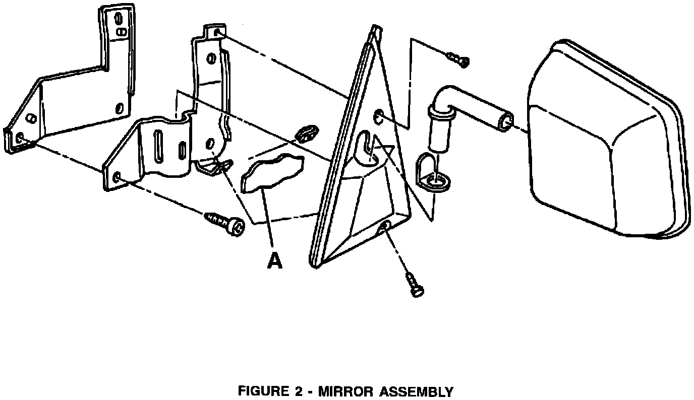 1. From outside the vehicle, remove the screws which secure the mirror cover and the mirror assembly to the door (Figure 1).