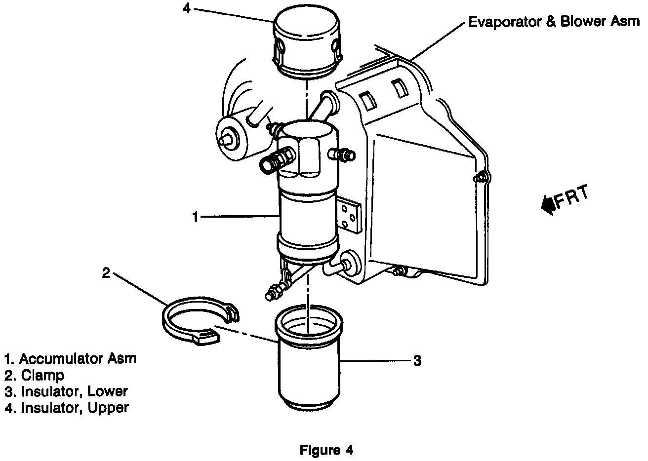 1. Install the upper and lower insulators, P/N 15612121 and 15612120, (Figure 4, Items 3 and 4) on the A/C accumulator assembly.