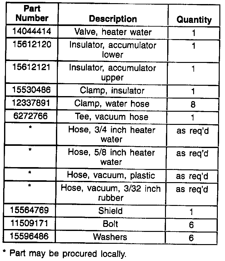 It may be necessary to cut about one inch out of each hose to allow the water heater valve (4) to be inserted. The exact amount of hose will depend on hose routing for different engine configurations.