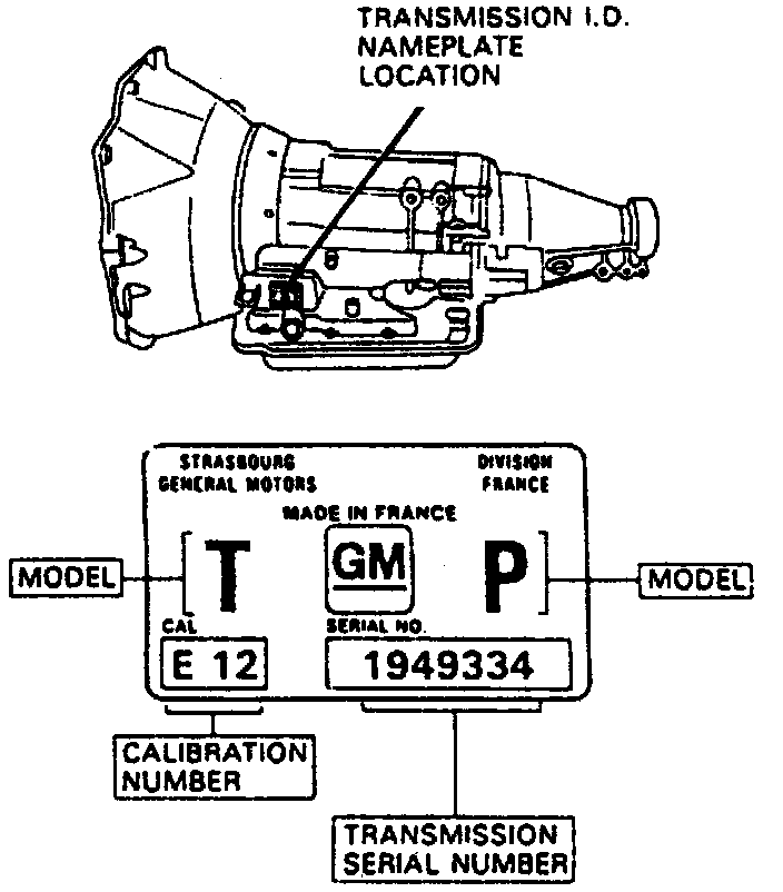 This transmission may be identified by the codes located on the tag attached to the right side of the transmission.