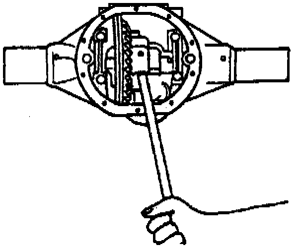 NOTICE: Be careful when prying the differential case out of the axle housing so as not to damage the cover gasket surface. The differential case must be supported when it is being removed to prevent the case from falling and being damaged.