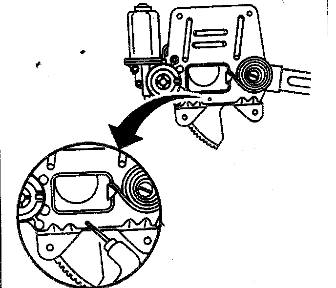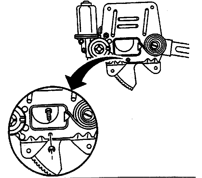 CAUTION: Sector gear must be locked into position. Regulator lift arm is under tension from the counterbalance spring and could cause personal injury if the sector gear is not locked in position.