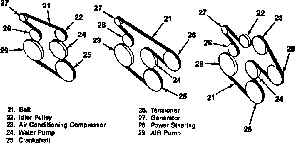 Incorrect Belt Routing - Drive belts may be incorrectly routed in a way that reduces the total contact area between the belt and pulley. This allows the water pump or fan pulley to slip although the belt may have been tightened to the correct tension.