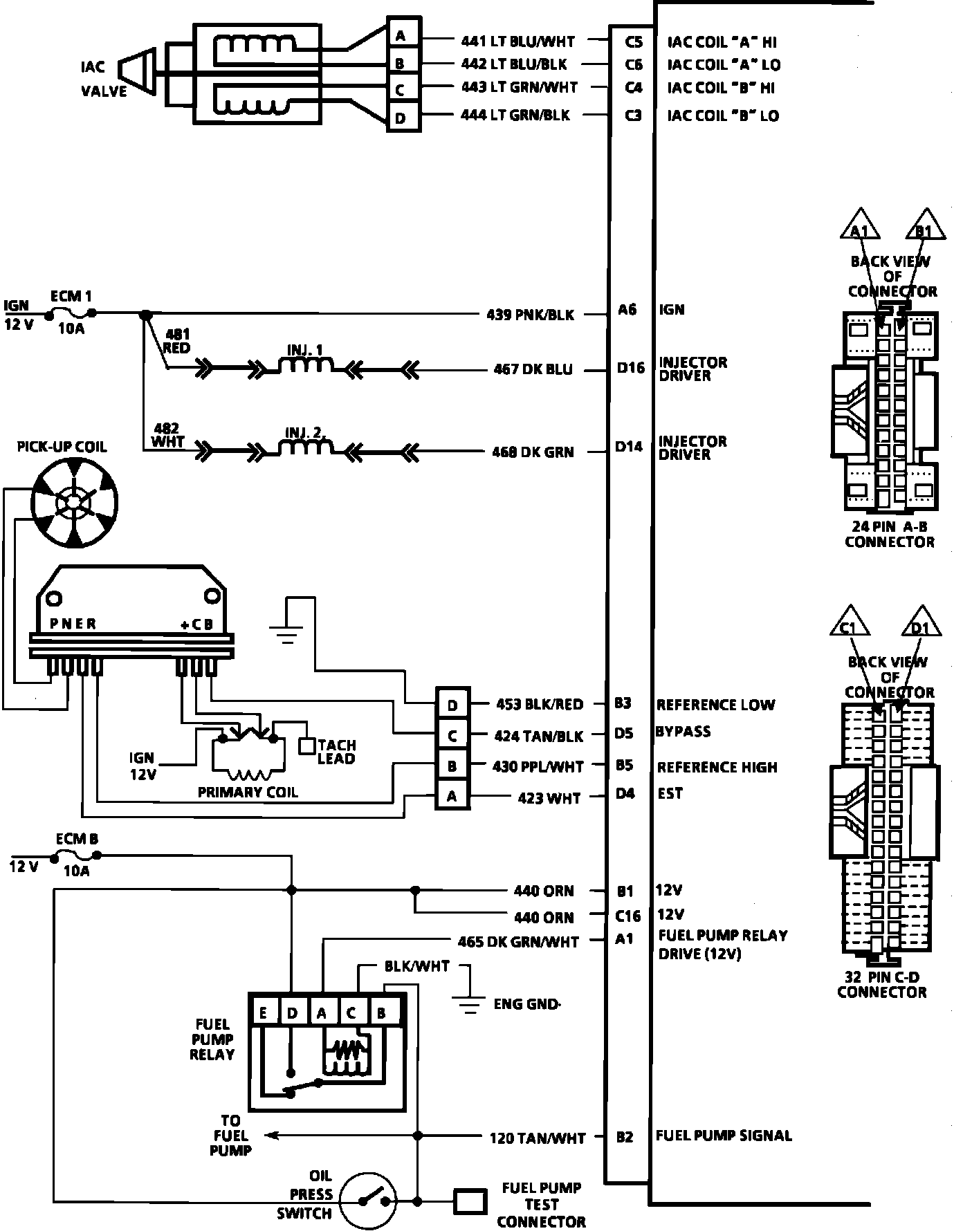 A1 = FUEL PUMP RELAY DRIVE (12V).