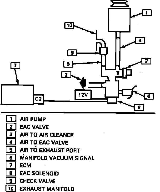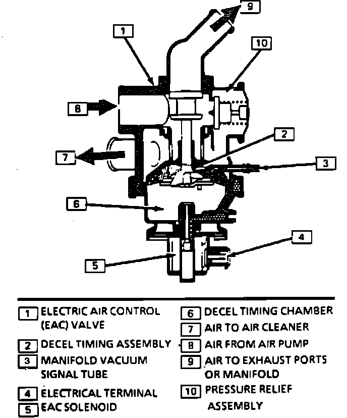 The EAC valve directs the air from the air pump to either the engine exhaust manifold port or to the air cleaner.