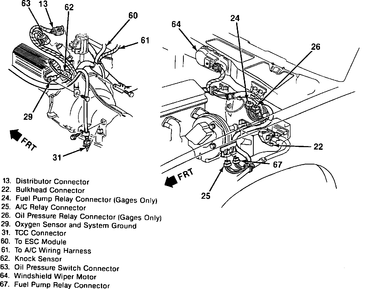 67 = FUEL PUMP RELAY CONNECTOR.