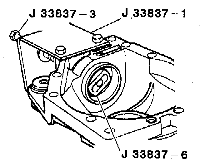 28. Inner bearing cup by pushing it out using J 33837-1, J 33837-3, and J 33837-6.