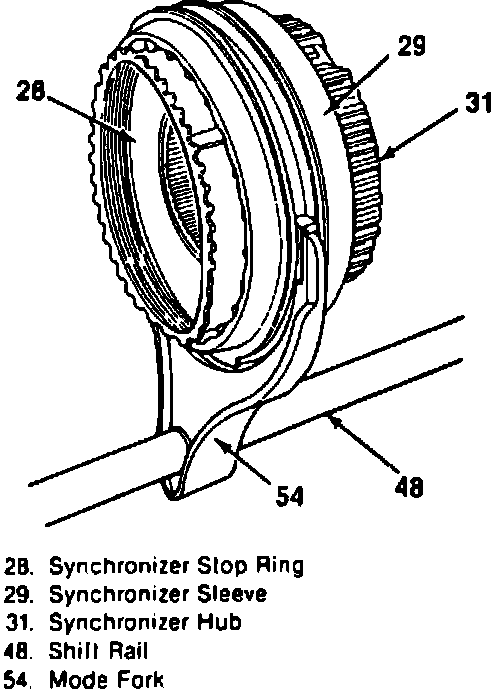 Fig. 29 Synchronizer Hub Assembly & Mode Fork. New Process Models 231, 233 & 241 Transfer Cases: