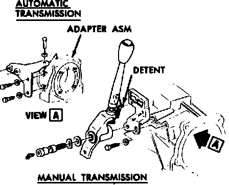 6. Disconnect shift rod at shifter assembly, then remove pivot and adjusting bolt, Fig. 1.