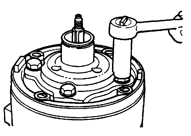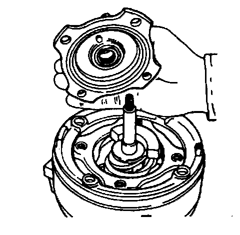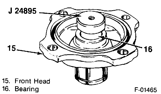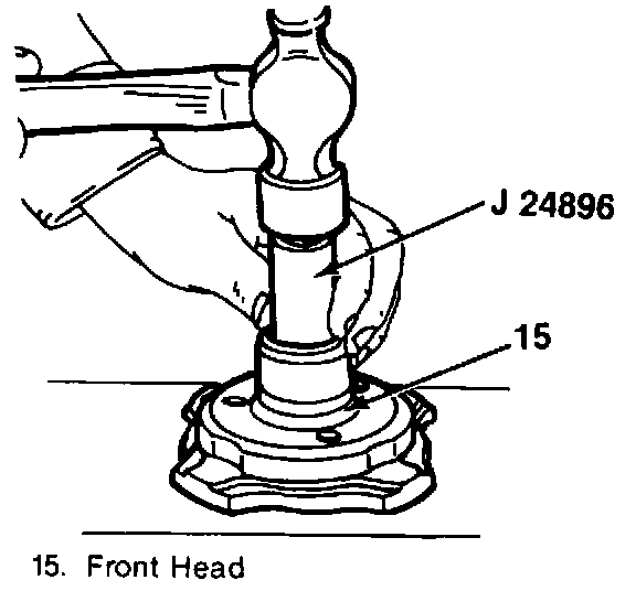 ^ Place the head on two blocks and drive the bearing from the head using J 24896.