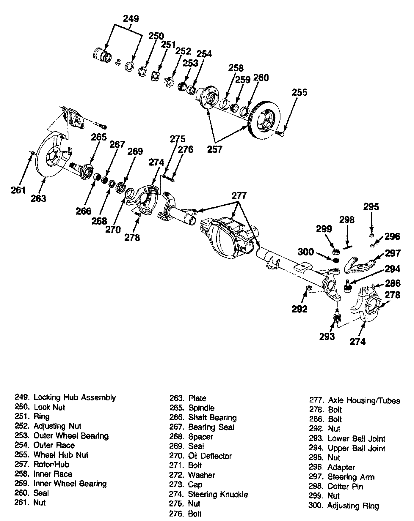 6. Lower ball joint (293); must be removed before any service can be done to the upper ball joint (294).