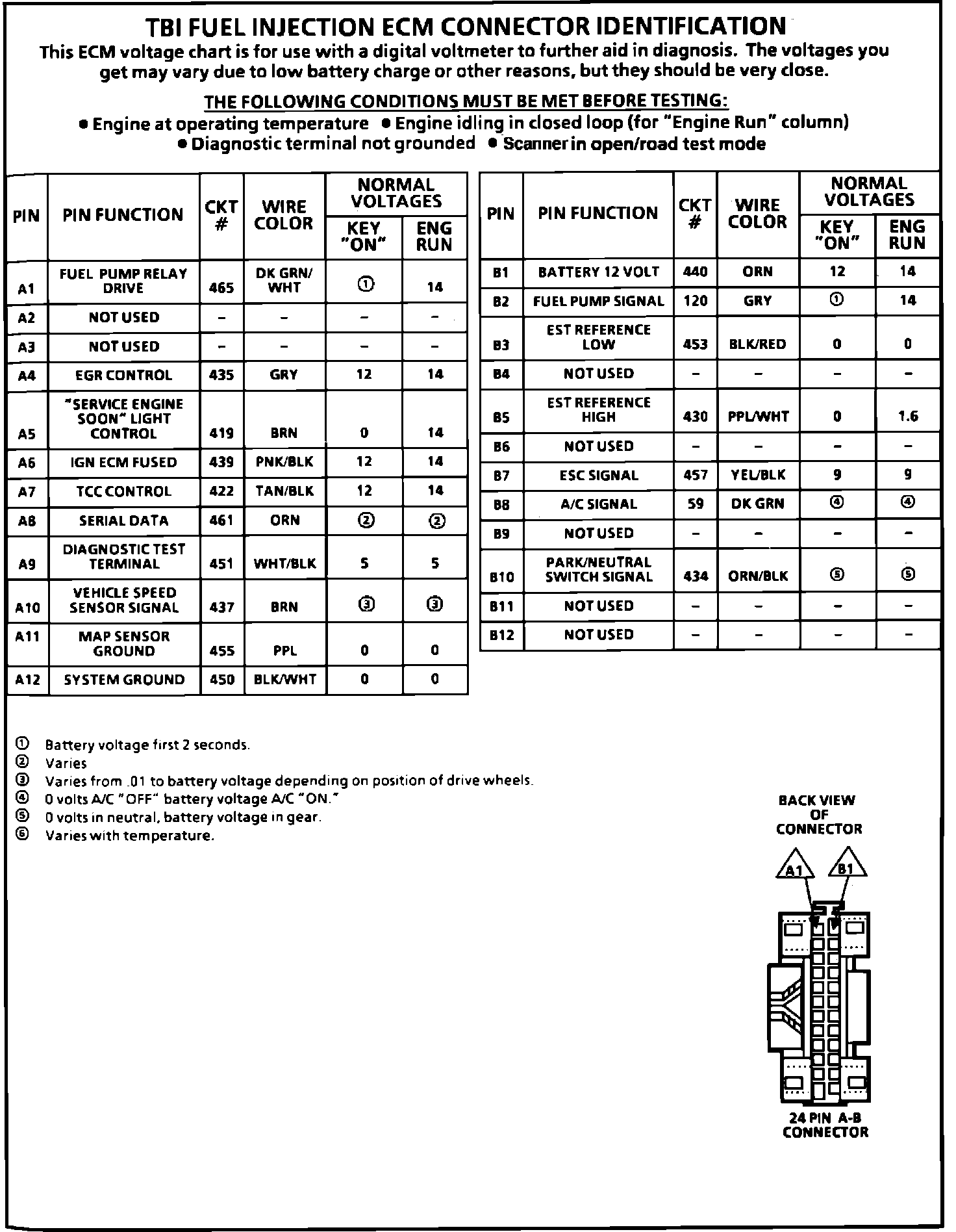 ECM Terminal Identification And Voltage Specification Part 2 Of 2:
