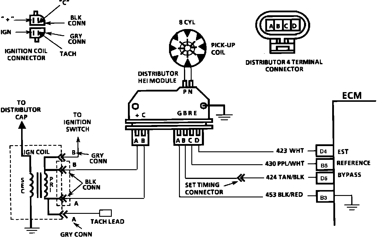 Wiring Diagram For Ignition System (Remote Coil/Sealed Module Conn. Dist.):