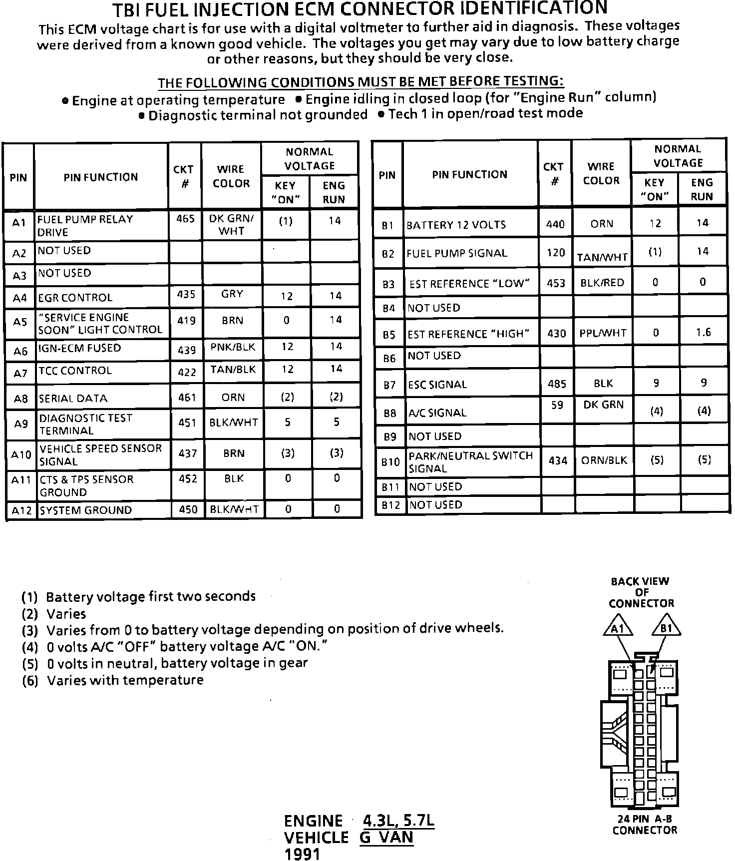 ECM Connector Terminal Except 4L80-E Transmission (Part 1 Of 2):