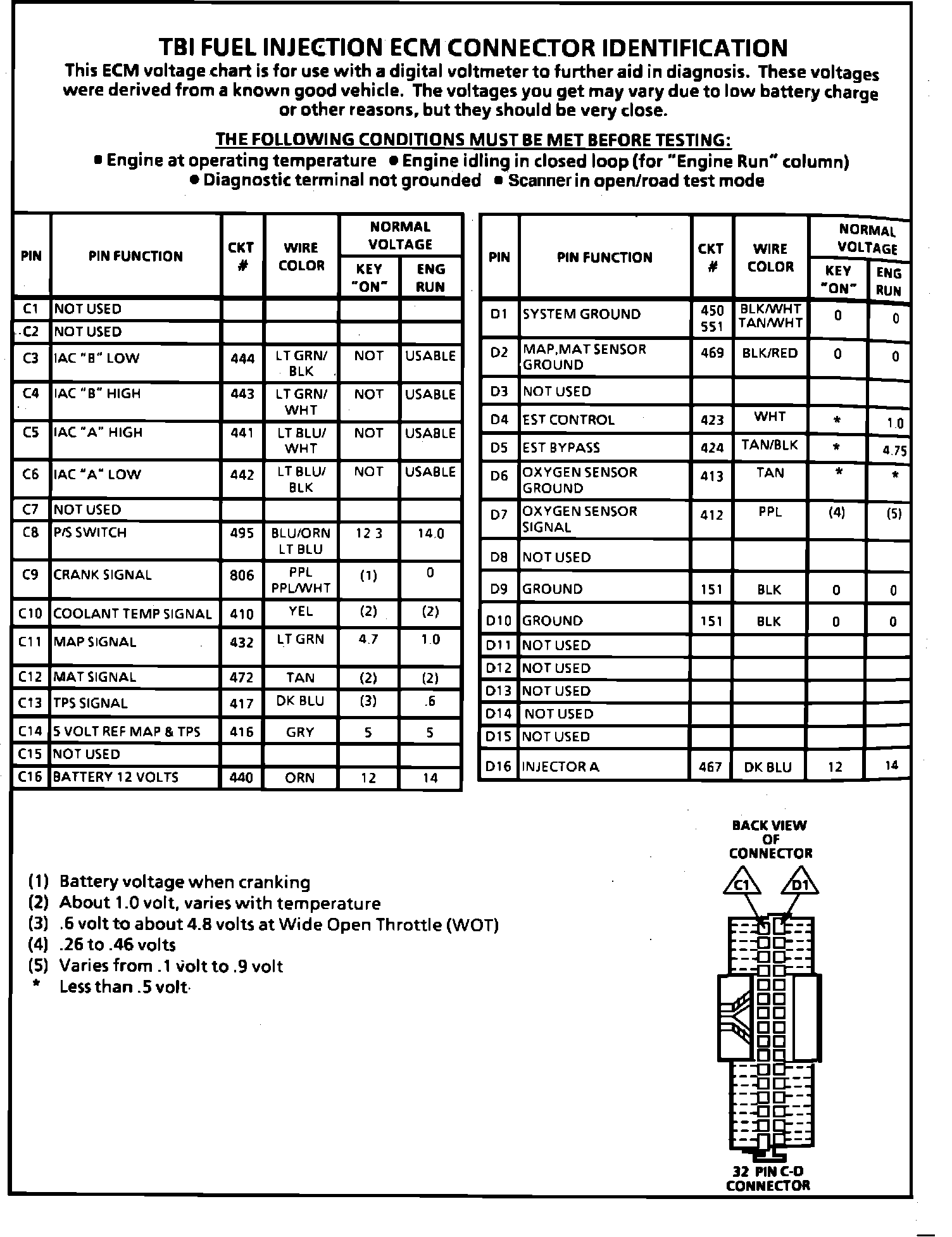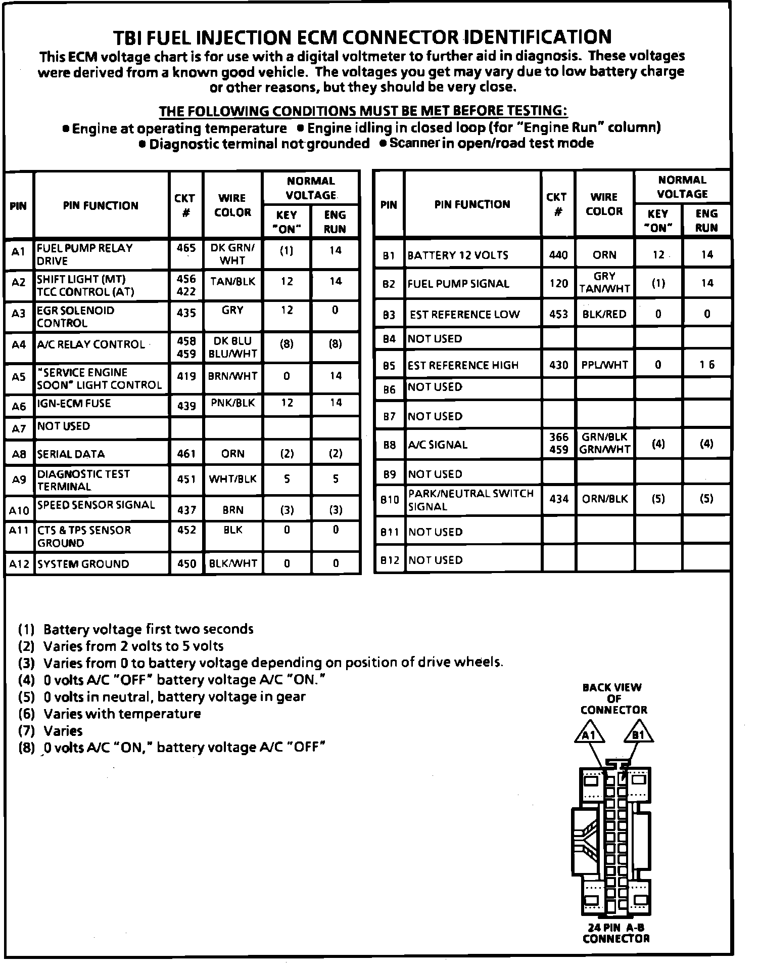 ECM Terminal Identification And Voltage Specification Part 1 Of 2: