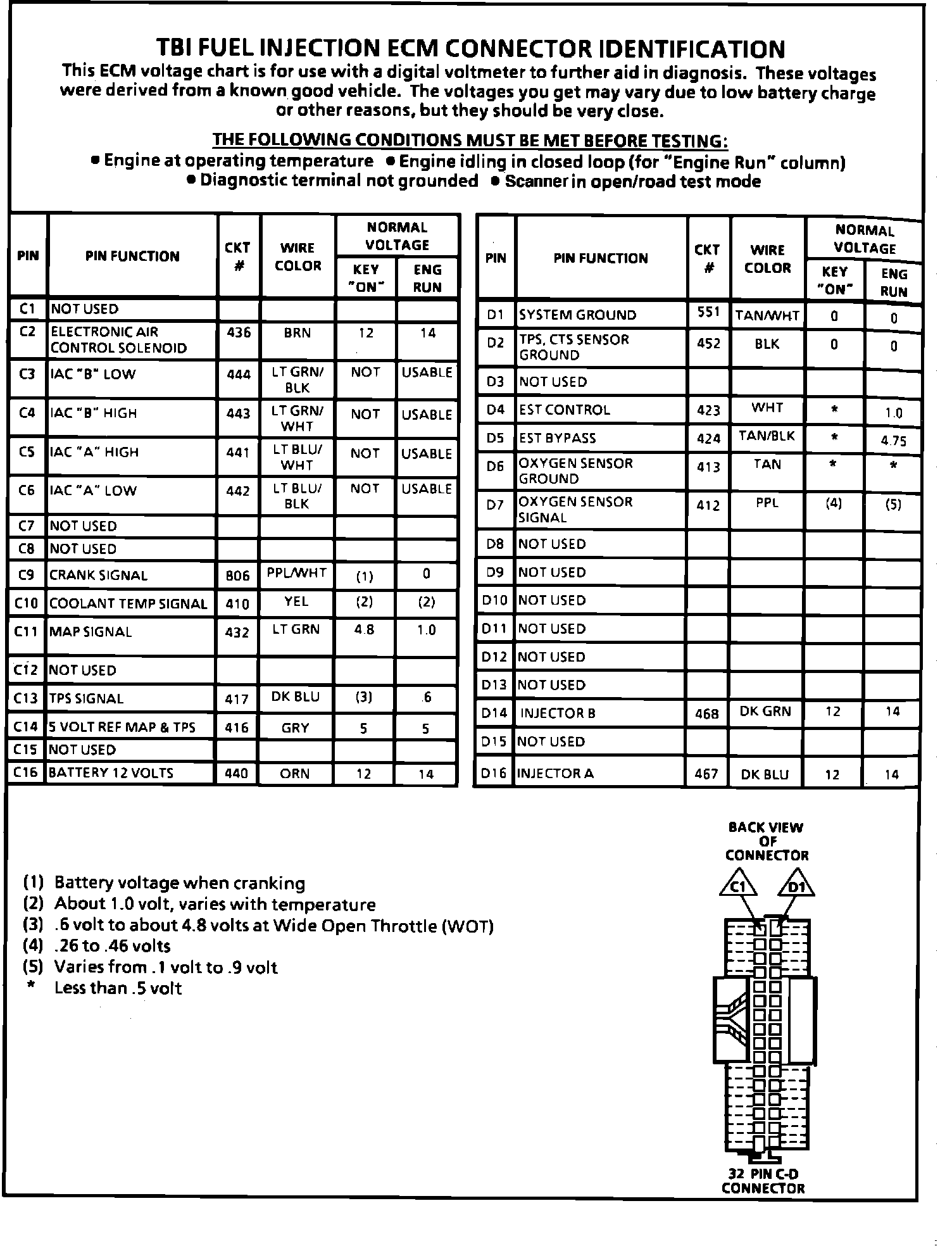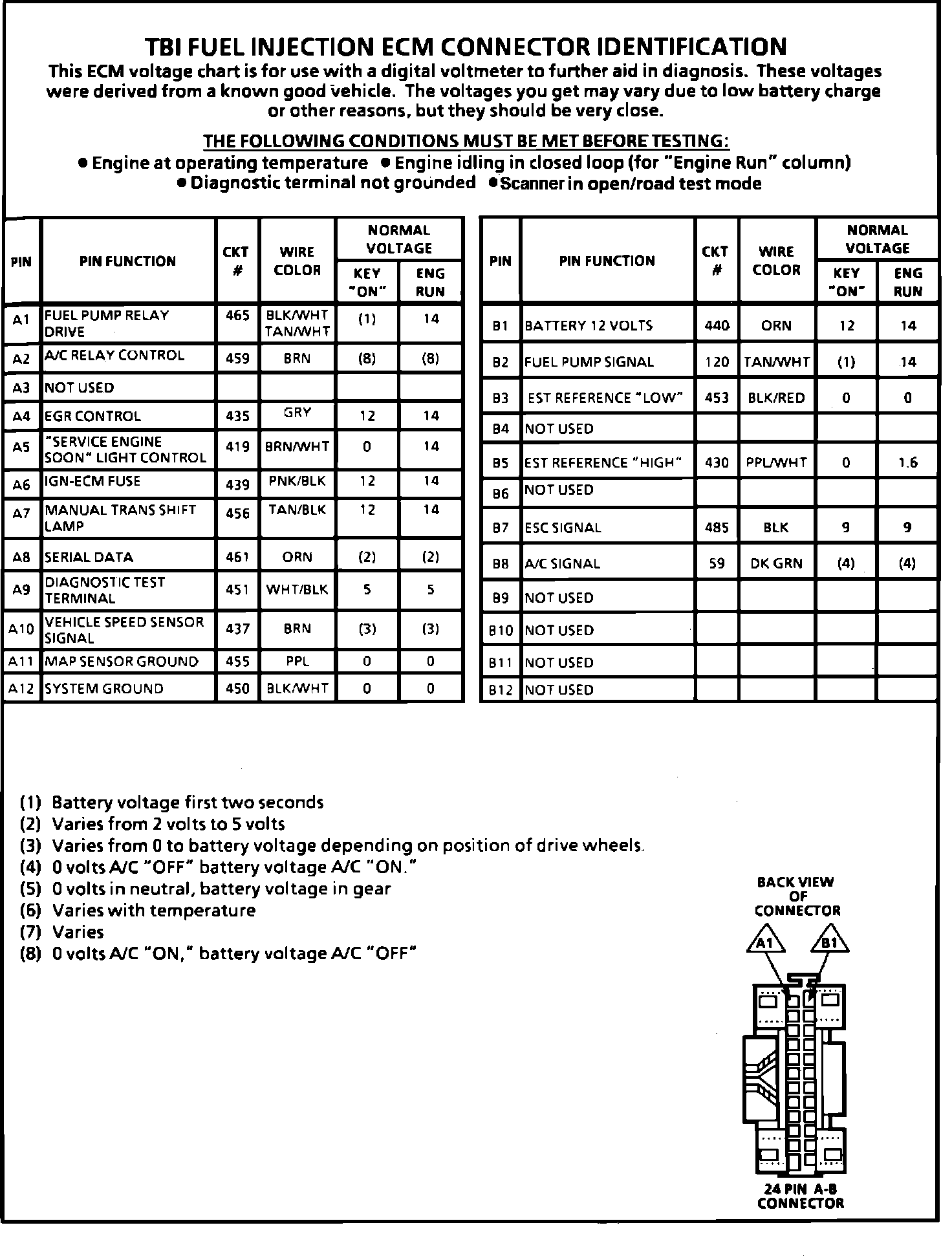 ECM Terminal Identification And Voltage Specification Part 1 Of 2: