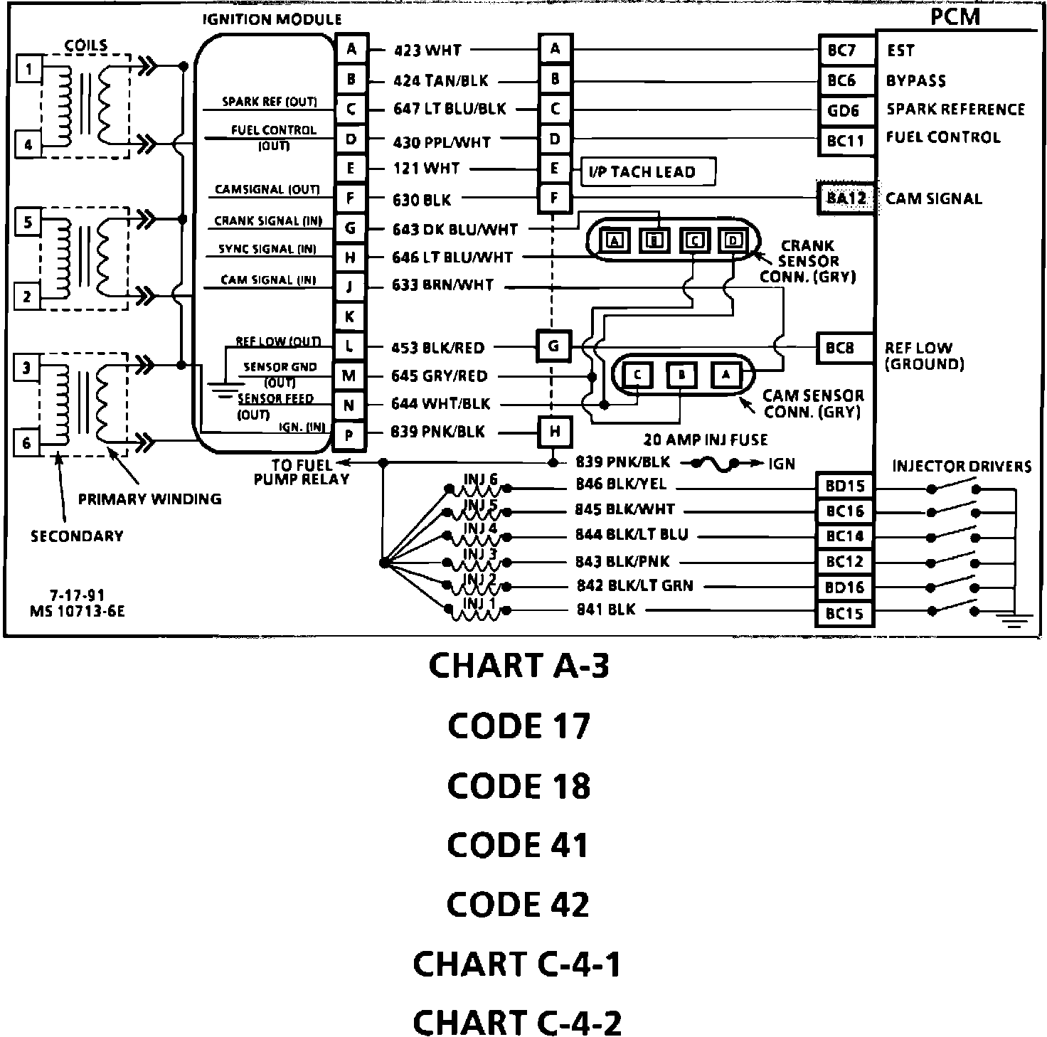 ECM - Revised Wiring, DTCs 17 18 41 42 Chart A3 & C4