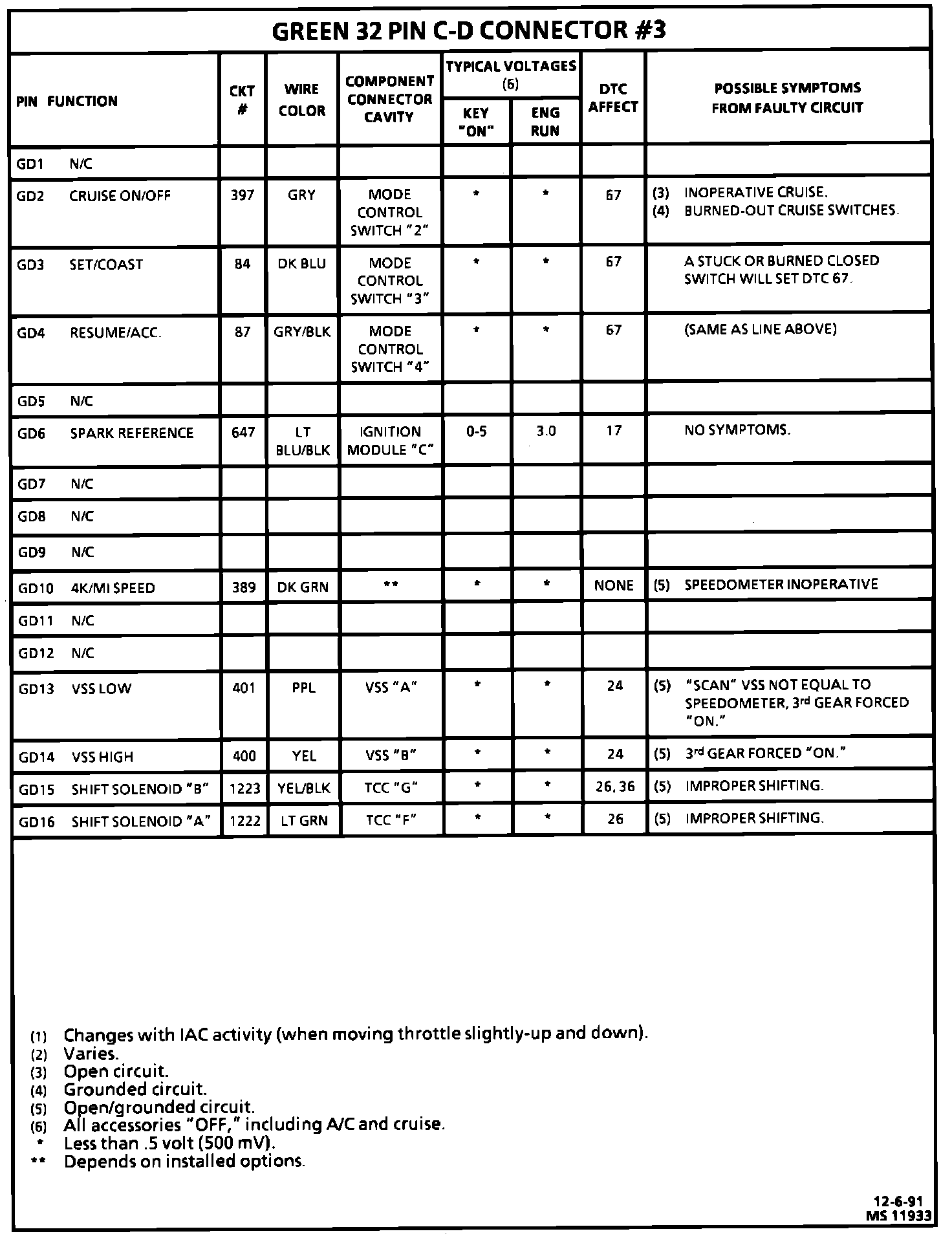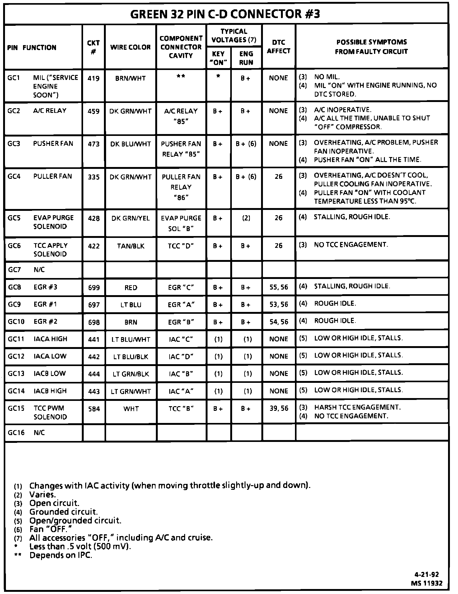 PCM Connector Symptom Diagnosis Chart: