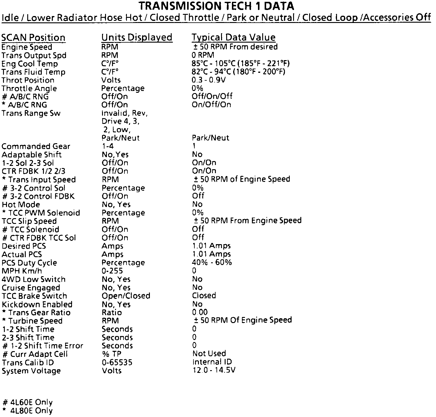 Scan Tool Data List